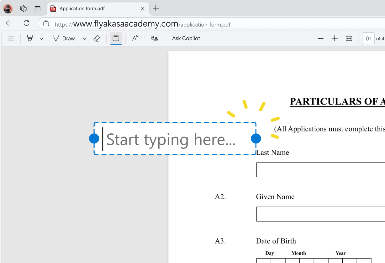 Enabling users to type anywhere on a PDF document